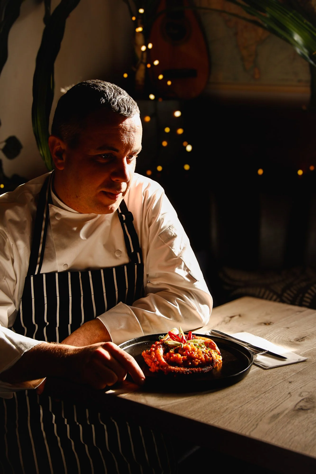 His cooking today is inspired by the Mediterranean, from Spain, Italy, Southern France, and North Africa, where simple ingredients bring strong flavour.